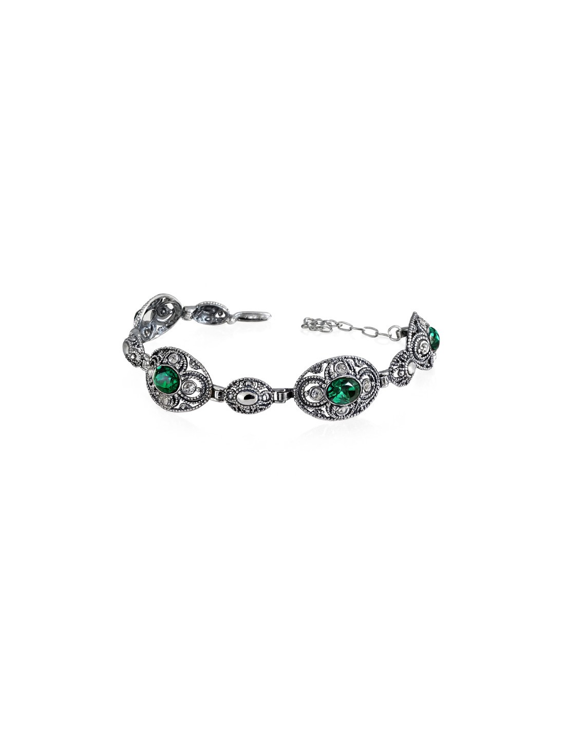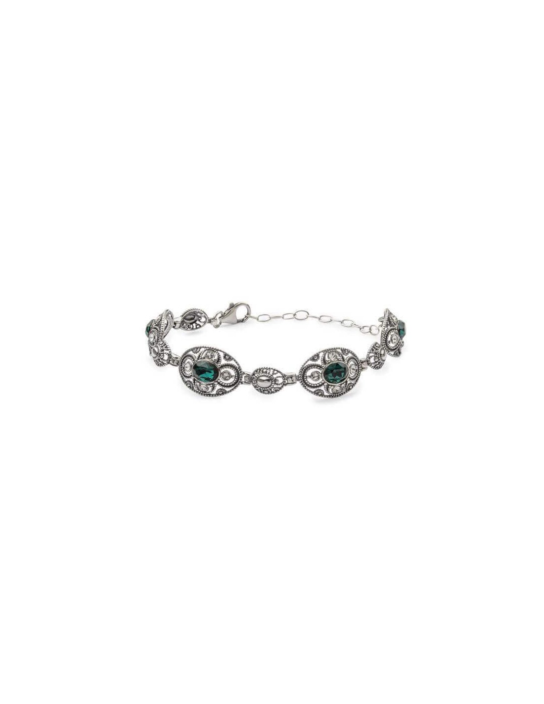 Srebrna bransoletka zdobiona kryształami Swarovskiego. Precyzyjnie wykonana ze srebra próby 925 - w siedzibie naszej firmy w Rumi. Ciekawy kształt, delikatna i subtelna, świetnie sprawdzi się na każdą okazję. Do kompletu dostępne kolczyki, pierścionek oraz wisiorek.