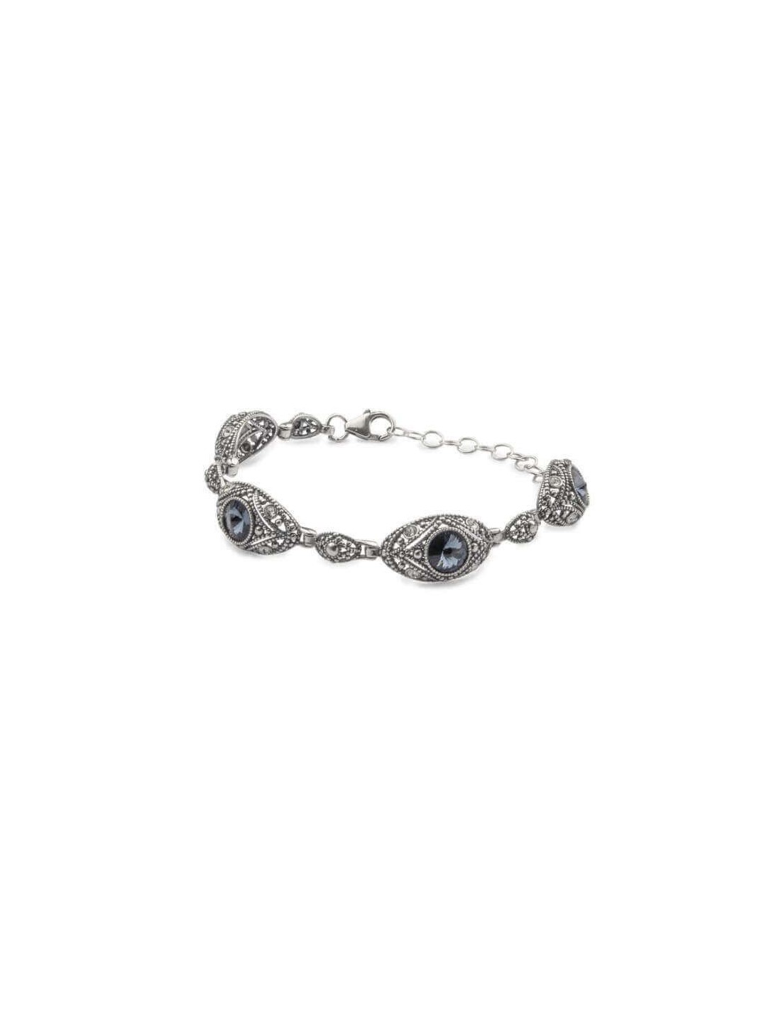 Srebrna bransoletka zdobiona kryształami Swarovskiego. Precyzyjnie wykonana ze srebra próby 925 - w siedzibie naszej firmy w Rumi. Ciekawy kształt, delikatna i subtelna, świetnie sprawdzi się na każdą okazję.