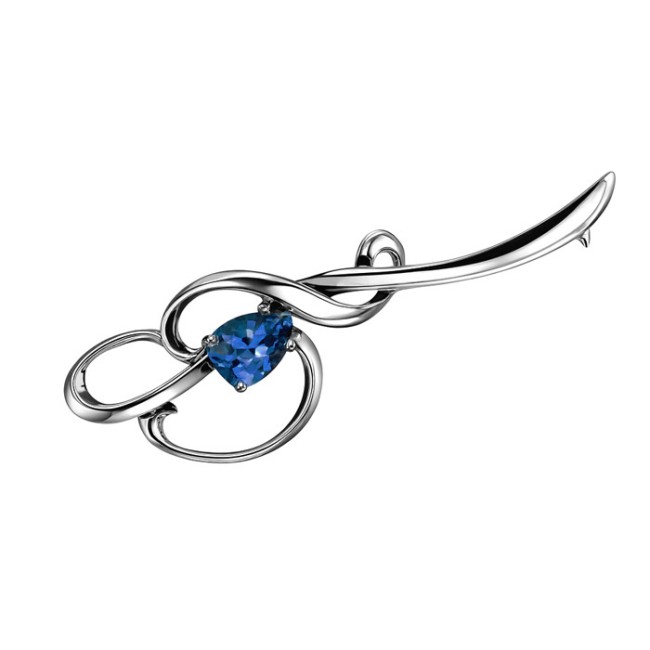 Wykonana ze szlachetnego srebra, broszka została ozdobiona błyszczącym kryształem, który subtelnie odbijają światło, tworząc zjawiskowy efekt wizualny. Nietypowy kształt sprawia, że ten dodatek staje się prawdziwą ozdobą, która wyróżni się na tle tradycyjnych rozwiązań jubilerskich.