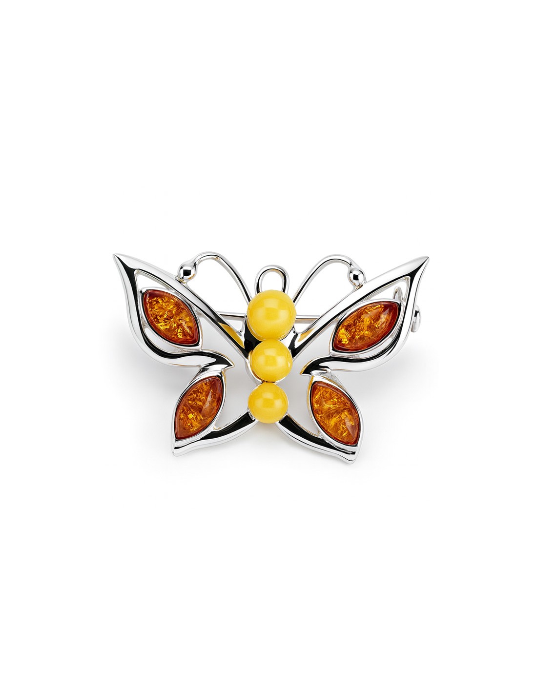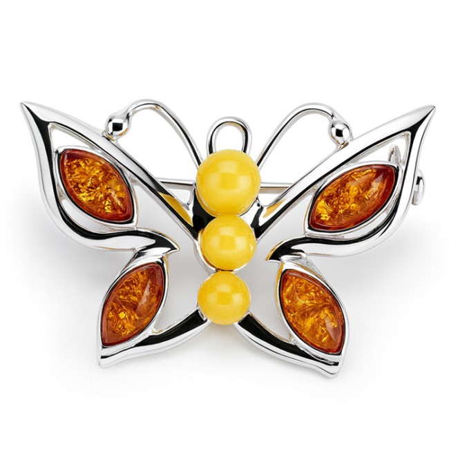 Srebrna broszka MOTYL z bursztynami B 154