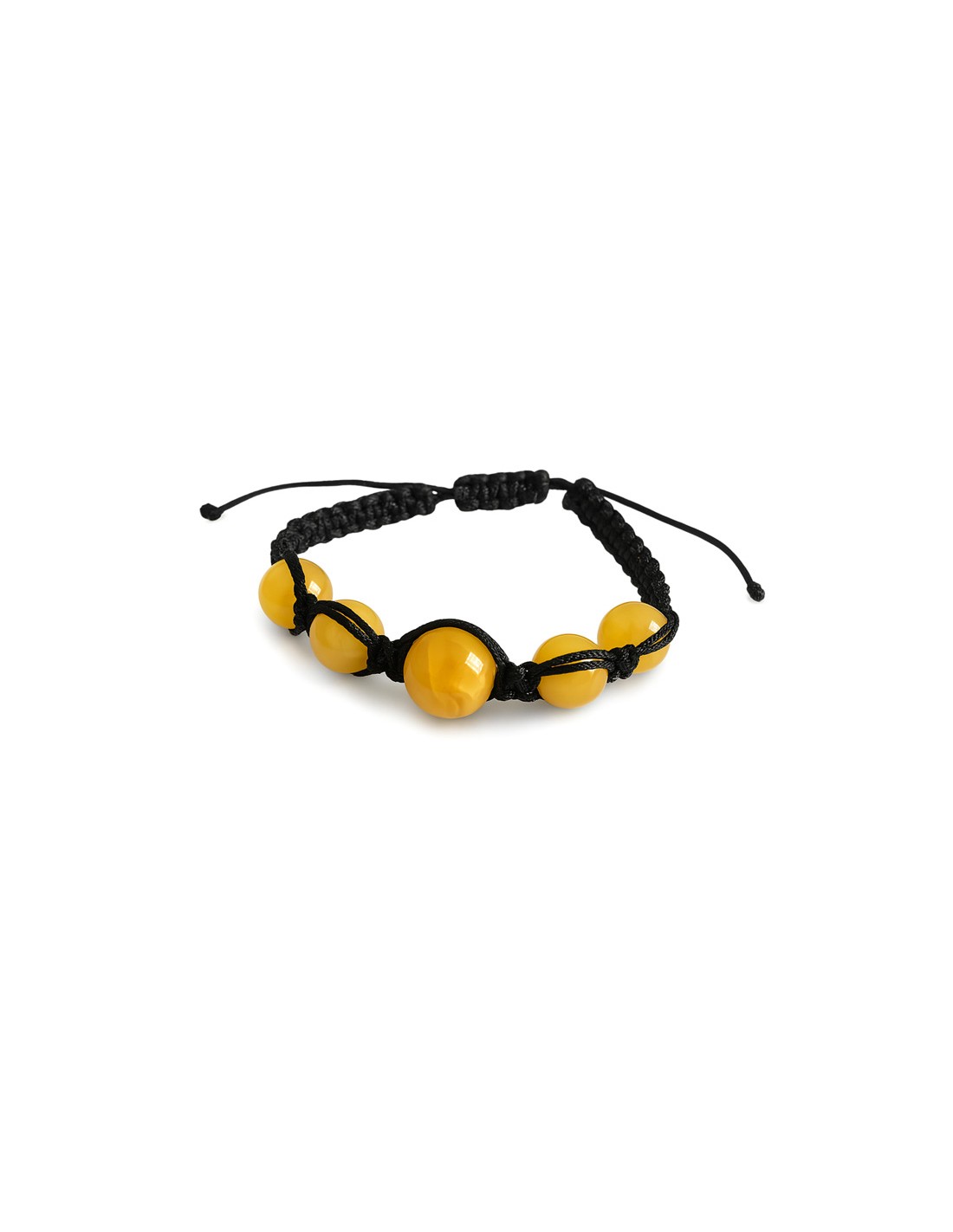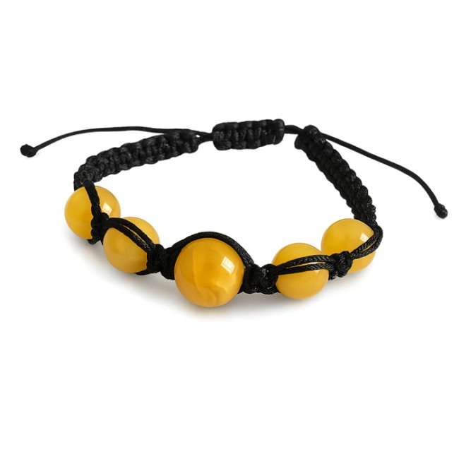 Bracelet decorated with five amber - milky balls. The most valued in jewelry, Baltic amber, has been constantly captivating crowds of lovers with its properties and the warmth of its color. The bracelet can be adjusted by sliding and unzipping the string.