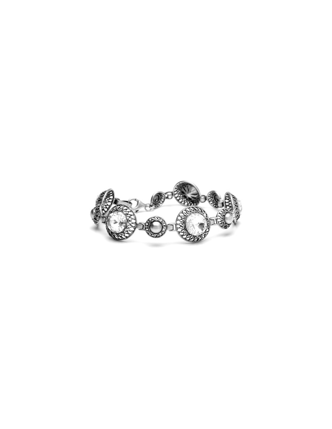 Bracelet with Swarovski crystals in dark blue (Montana) or white (Crystal). Like all items in our shop, it is made of 925 silver. The silver, oxidized setting of the crystals draws attention, which extremely emphasizes and brings out their beauty. The jewelry will certainly catch the eye and will not go unnoticed. It will add charm to every owner, without exception. It is possible to buy earrings on a "long" or short clasp and a pendant to the set.