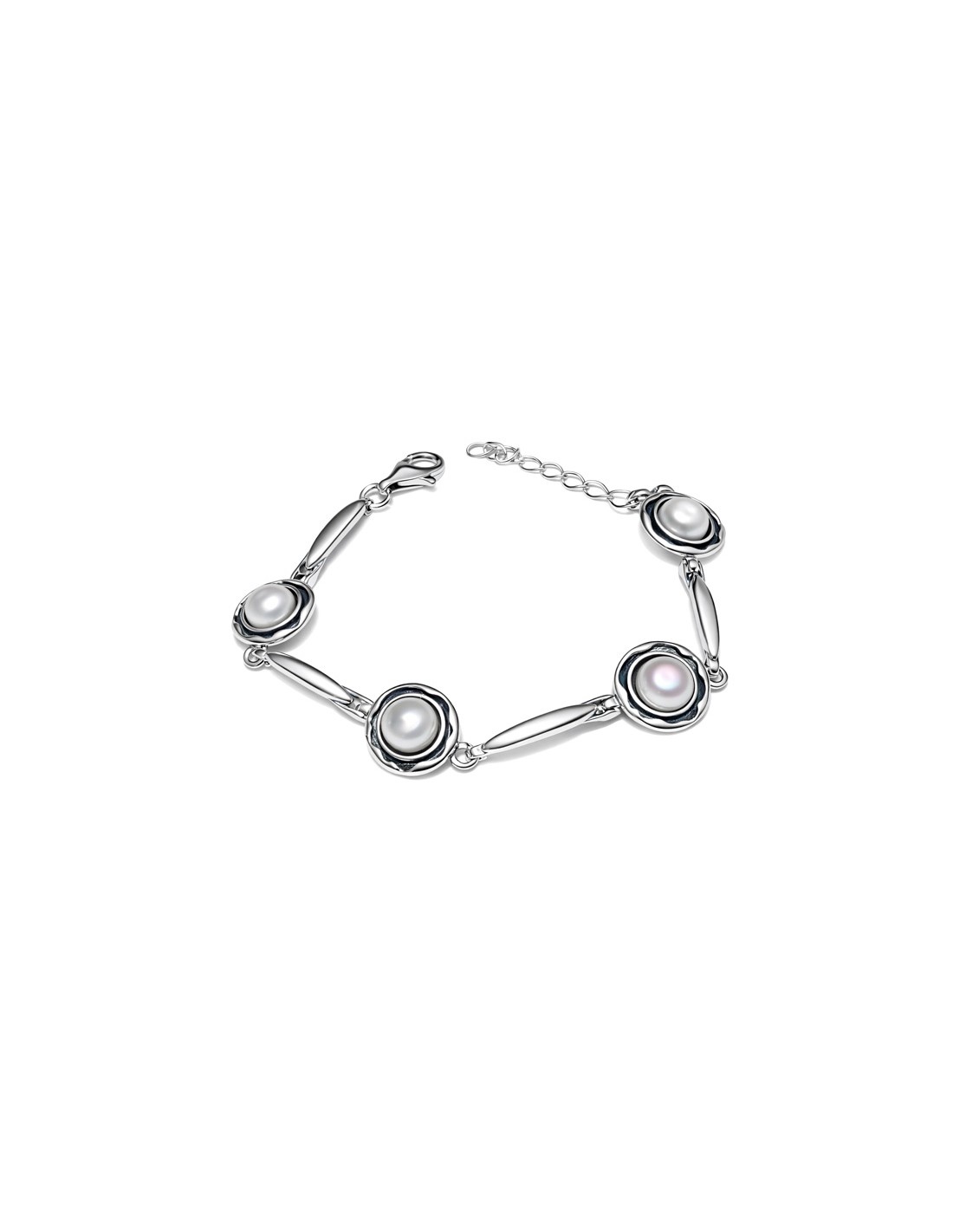 A bracelet made of 925 silver with incredible precision. Its links create an interesting visual motif, with a cultured pearl set in the middle. A product characterized by incredible aesthetics and delighting with the intricate workmanship of individual elements. It will add chic and elegance to every owner, without exception. The bracelet is oxidized, so it will maintain its appearance for years. It is possible to buy earrings, a pendant and a ring to the set.
