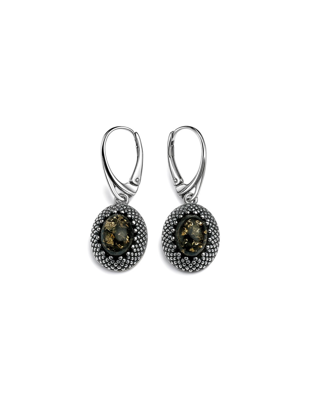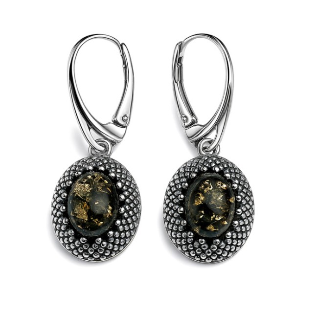 Silver earrings decorated with amber covered with rhodium. Earrings made of 925 silver (additionally oxidized - darkened silver) and natural Baltic amber. Precisely prepared at our company's headquarters in Rumia. Model 2022 combines the elegance of beautiful silver and the classic of wonderful amber.