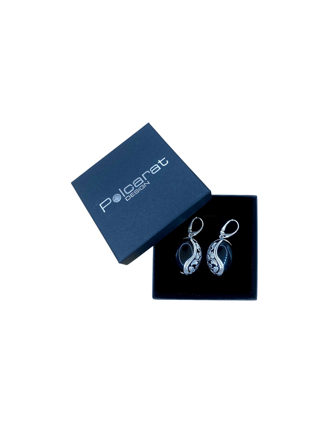 Earrings decorated with onyxes set in 925 silver. An interesting silver motif resembling winding leaves adds expressiveness to the jewelry and makes it more interesting. And yet onyx itself is already interesting and mysterious...