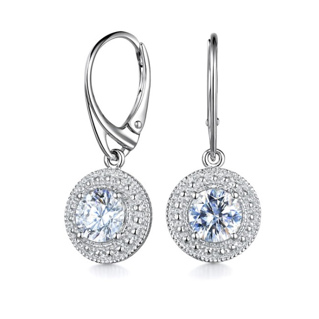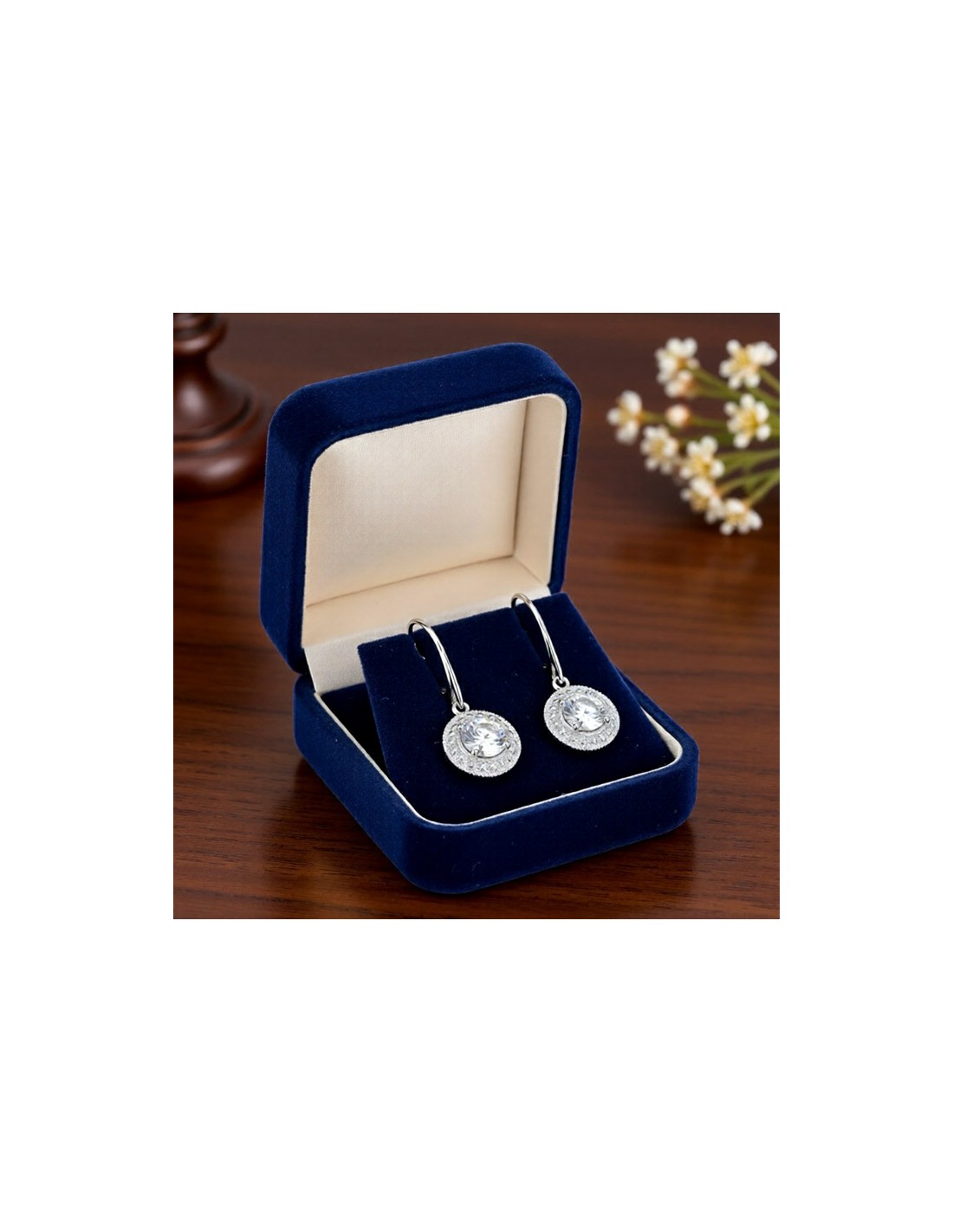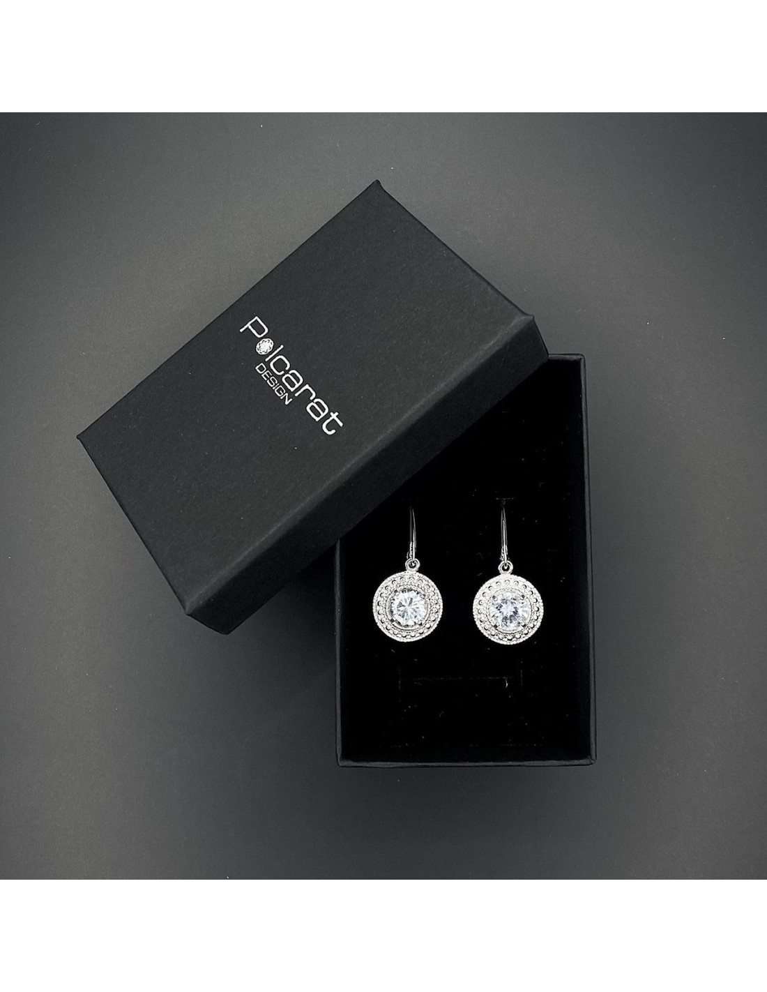 Silver, rhodium-plated earrings decorated with white zircon. Beautiful combination of silver and zircon. Precisely made, with a classic shape. Earrings made and designed at our company's headquarters. The set in our jewelry store includes a pendant, earrings with other clasps, a ring, and a bracelet.