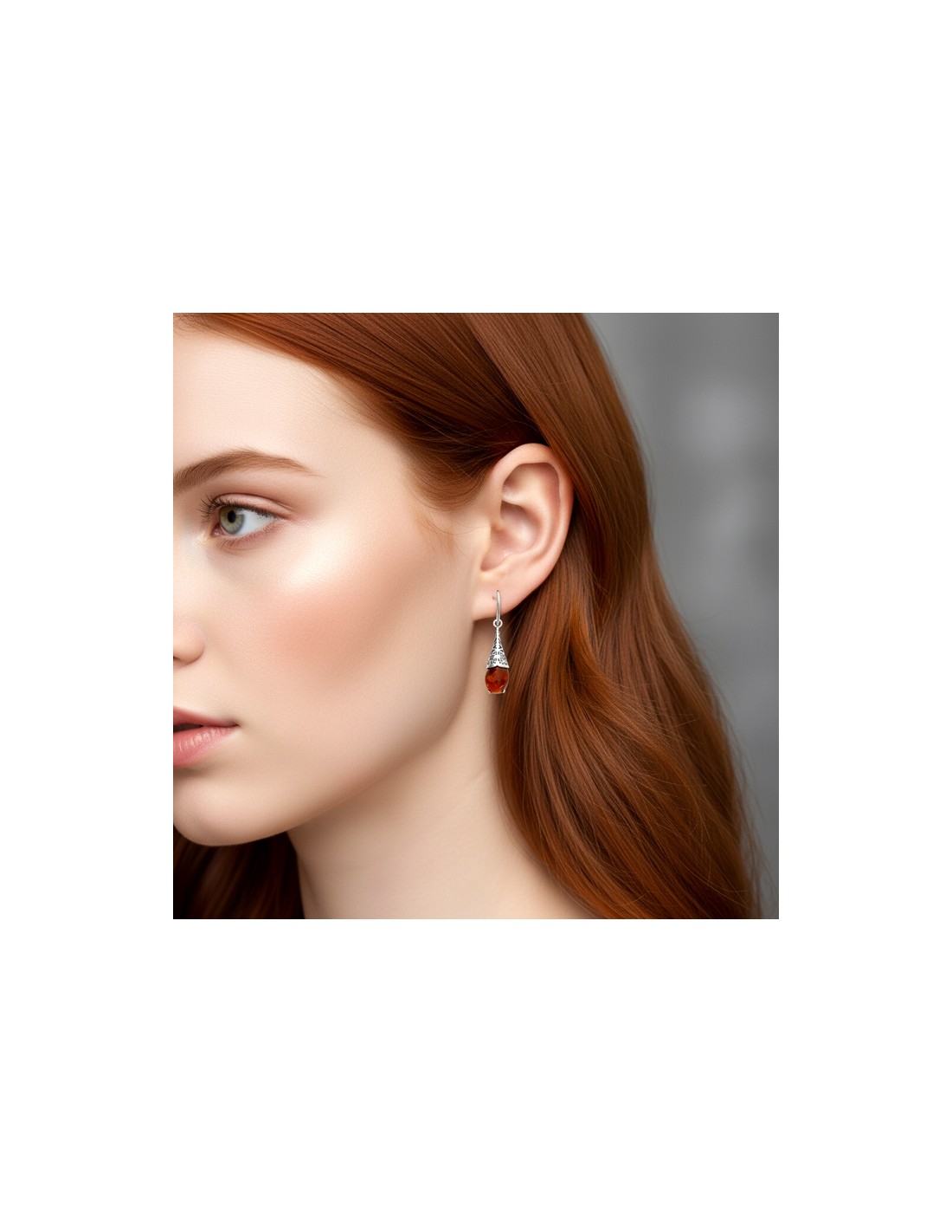 Made of 925 silver earrings decorated with amber. An interesting combination of silver setting with natural Baltic amber. The earrings are oxidized, which gives them an elegant and noble look while increasing the resistance of the silver to darkening. Packed in a decorative box.
