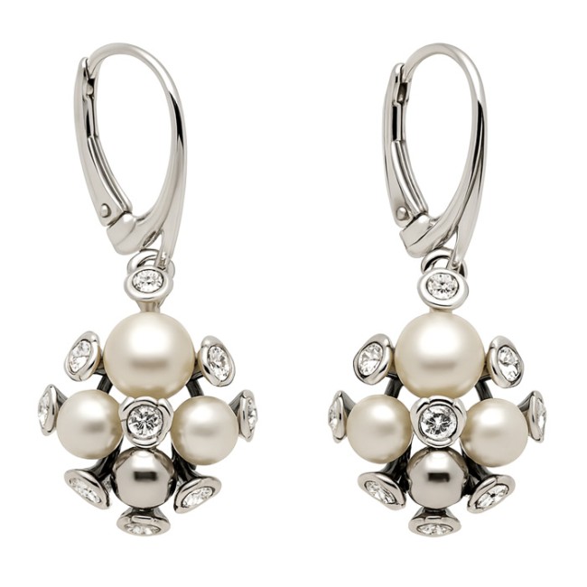 Swarovski K 1921 Pearl and Crystal Silver Earrings