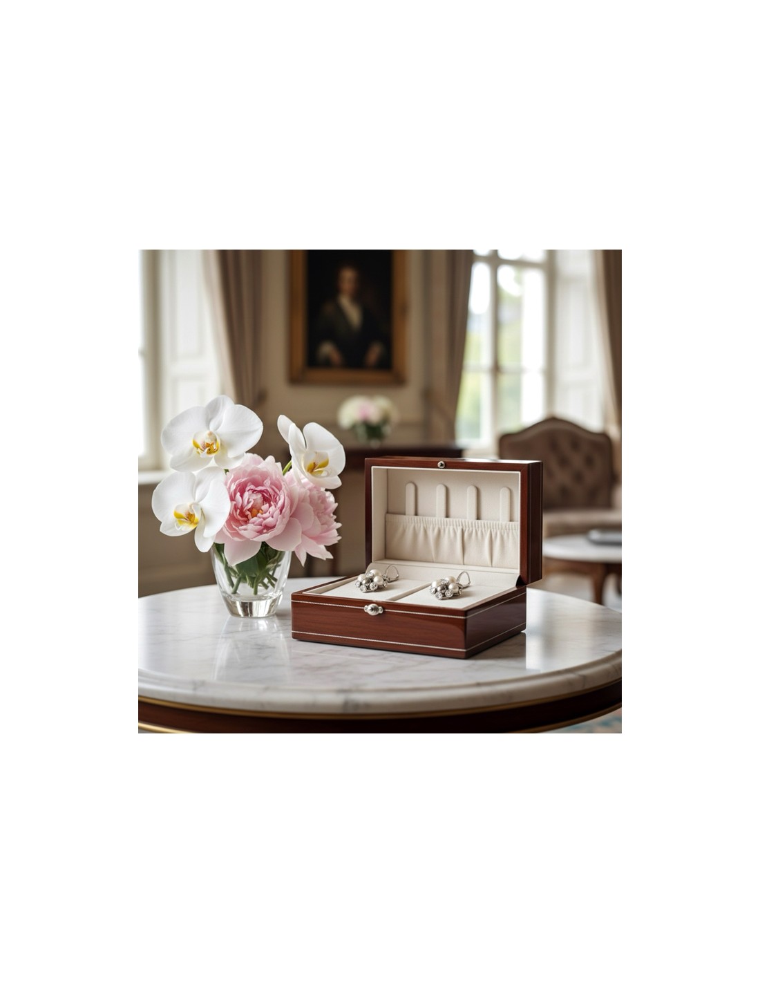 The product is made of 925 silver, oxidized, so it will maintain its natural appearance for years. The exceptionally rich pattern delights with the classic pearl and the shine of Swarovski crystals. As a gift, it will please every woman who appreciates beauty and subtle jewelry. In a set with a pendant from the same model, it will certainly create a unique set.