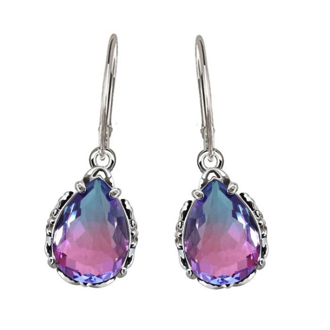 Silver earrings with crystals, 925 silver. Beautiful, silver setting looks extremely interesting decorating the stone from the front, side and back with an interesting weave. The crystal itself has an amazing cut, which gives the effect of an extraordinary palette of colors while maintaining the blue tone (Sapphire Shimmer) or purple-navy blue (Tourmaline). We often hear from satisfied customers that the product is "even more beautiful" than in the photo. This never surprises us as it is indeed difficult to capture the beauty and shine of crystals in a photo, an example of which are silver earrings 2121. They will work in any version, adding elegance and shine to the styling. You can choose a ring and a pendant to the set, with which they will create a dazzling set.