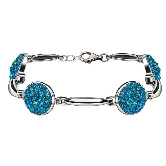 In the bracelet model 2103 made of 925 silver and beautiful druzy crystals - they look like hundreds of connected elements. Beautifully finished, a truly phenomenal crystal. And at the same time it highlights the beautifully made pattern of silver jewelry. A real rarity and an excellent gift idea. It is possible to match the bracelet with earrings, a pendant and a ring in the same model.