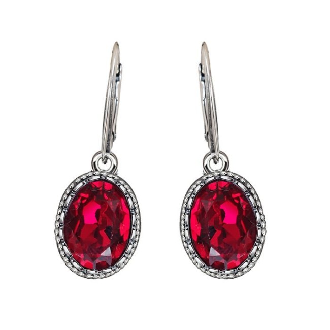 Earrings made of 925 silver and beautiful crystals. Available in one of three color versions: green (Emerald), navy blue (Montana) or red (Siam). The energetic color of the crystals means that the earrings put on the ears will attract attention and complement the owner's outfit. At the same time, red, green or navy blue are classic colors that fit into many creations. Silver hanging earrings in this pattern are characterized by extremely detailed workmanship of the silver setting itself. It surrounds the crystals with a beautiful braid not only from the front, but also from the side and back, which is not a standard and only characterizes non-trashy and top-class products. In this way, the earring moving naturally on the ear will always look interesting. You can choose a bracelet, pendant and ring for the earrings.