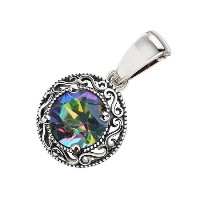 Silver pendant decorated with crystal. The setting made of 925 silver brings out the beauty of the Sapphire Shimmer crystal. The crystal shimmers with an incredible riot of colors from blue, light blue to purple and green. You can match the pendant with earrings, a bracelet and a ring in the same model. It will fit both modern and retro stylings. It is also an excellent gift option, because the oxidized setting combined with the modern color of the crystal will suit different tastes.