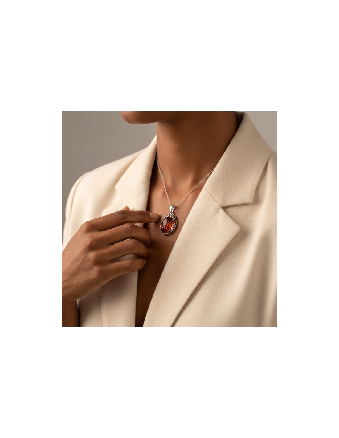 Silver pendant decorated with natural Baltic amber. Precisely made of 925 silver. Classic model designed in our company's headquarters. Beautiful gift for a special occasion for a special person. The natural nature of the stone which is amber means that it may differ slightly from the one in the photo (as for the intensity of internal elements in the stone itself).