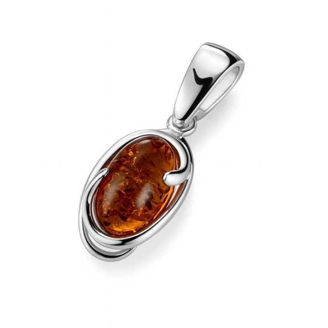 Pendant decorated with cognac amber, set with 925 silver. The most valued in jewelry, Baltic amber, continues to captivate crowds of lovers with its properties and warm color. The universal design will appeal to both lovers of classic and modern design. It will be a subtle, but at the same time expressive addition to any outfit. It is possible to buy earrings, a ring and a bracelet to complete the set.