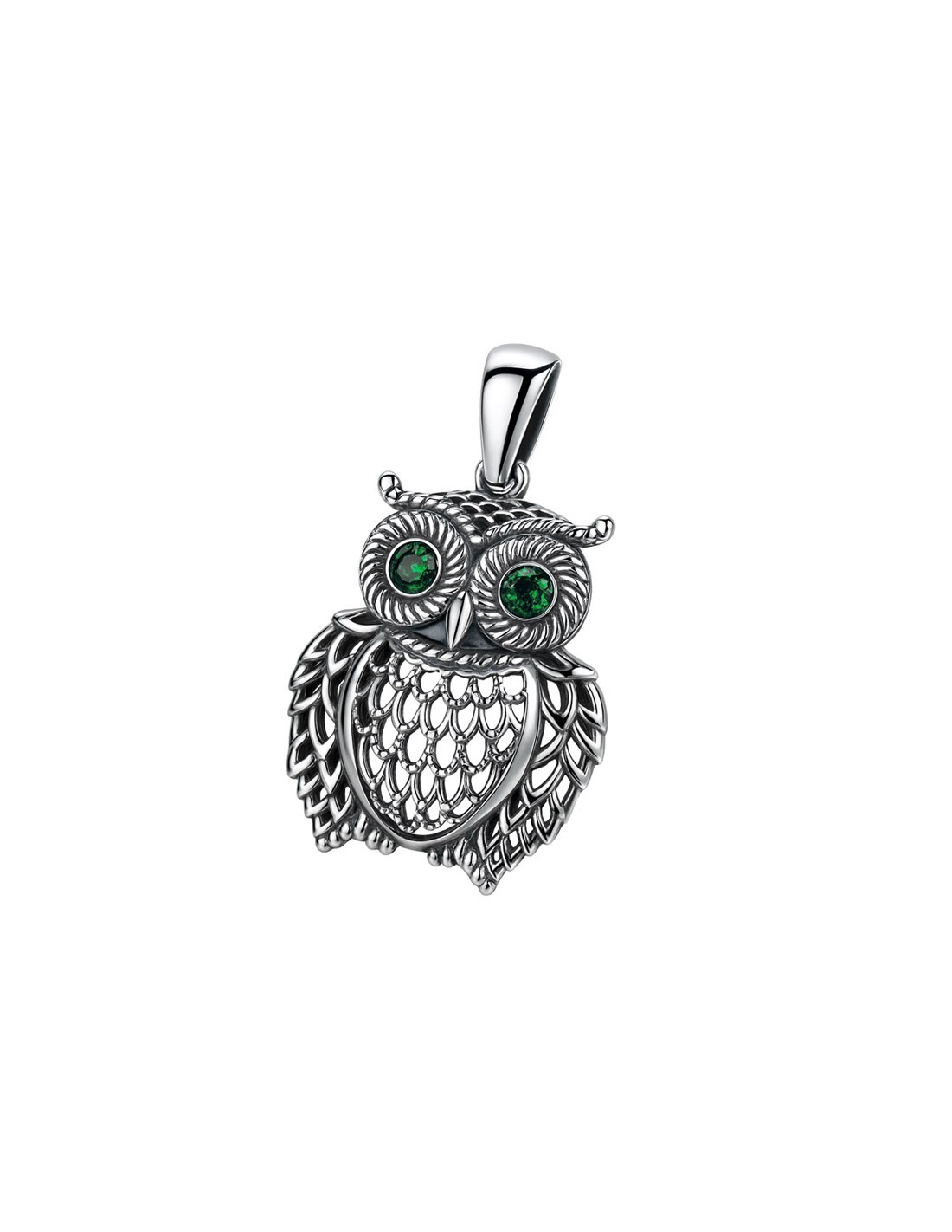 Beautiful silver OWL pendant decorated with cat's eye stones