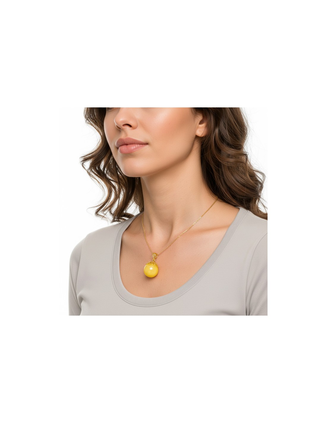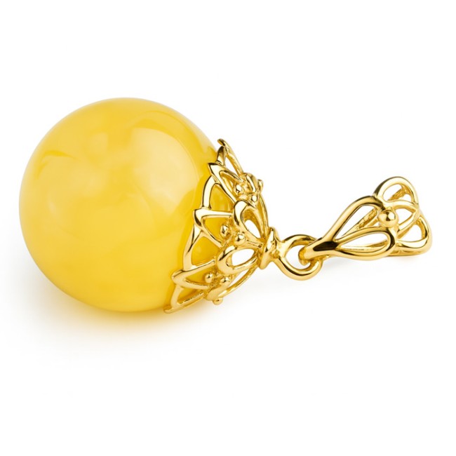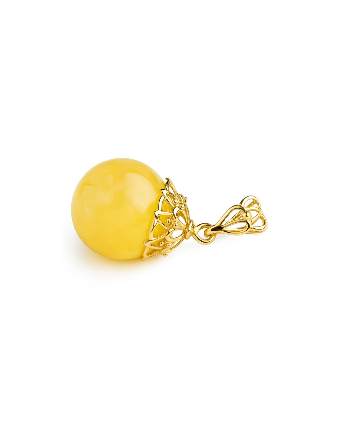 Pendant decorated with perfectly spherical, milky amber set in beautiful openwork motifs.