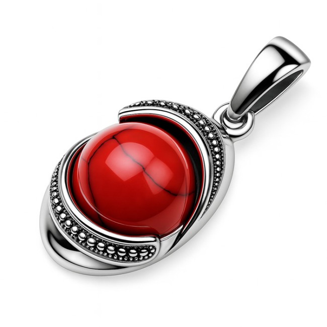 Coral promotes courage and vitality, and set in delicate oxidized silver it will decorate the neckline or, worn on a longer chain, it will look beautiful around the collar of a shirt in diplomatic situations.
