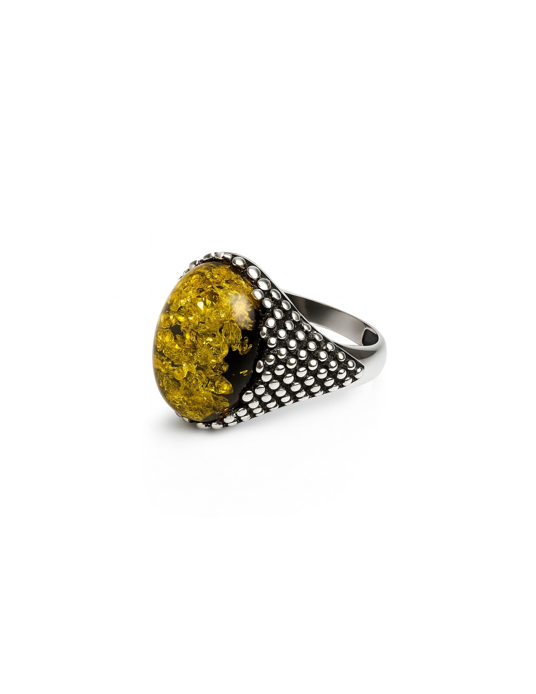 Ring decorated with cognac amber set with 925 silver. The most valued in jewelry, Baltic amber, continues to captivate crowds of lovers with its properties and the warmth of its color. The ring is rhodium-plated, which increases its resistance to blackening, enhances its shine, thus increasing the value of rhodium-plated jewelry. The universal design will appeal to both lovers of classic and modern design. It will be a subtle, but at the same time expressive addition to any outfit. It is possible to buy earrings, a pendant and a bracelet to complete the set.