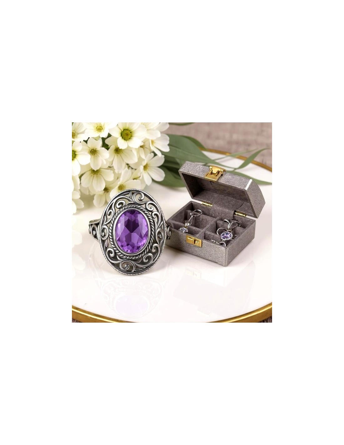 Silver oxidized ring decorated with Swarovski crystal. Precisely made ring made of 925 silver. Crystals are not glued but forged - thanks to which the jewelry is more solid and will please the owner for longer. The ring is oxidized which means that it will remain in its current appearance for many years.