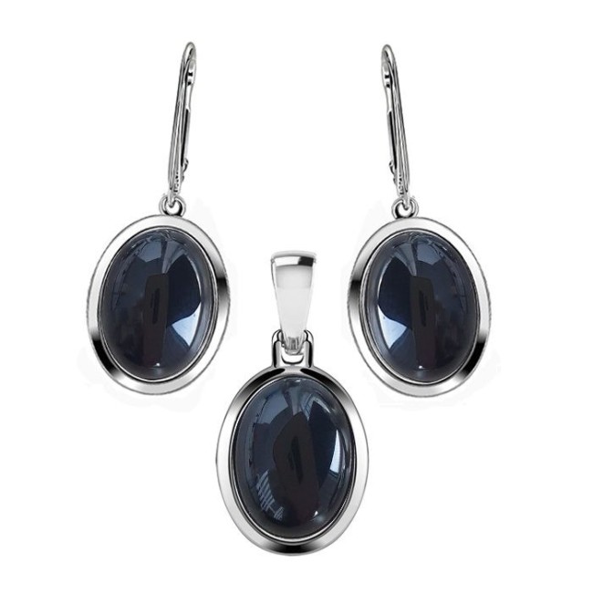 Silver set (earrings + pendant) with black agates KPL 585 black agate
