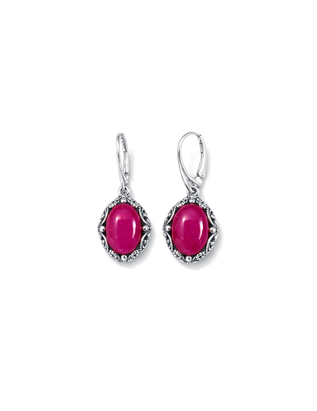 Kolczyki srebrne 925 agat fuksja – wiszące, oksydowane, stylowe K 2169