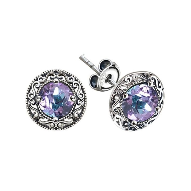 Srebrne kolczyki zdobione kryształami szklanymi. Kolczyki ze srebra o próbie 925, z kryształami w różnych kolorach. Zapięcie na sztyft czyli popularny "baranek".