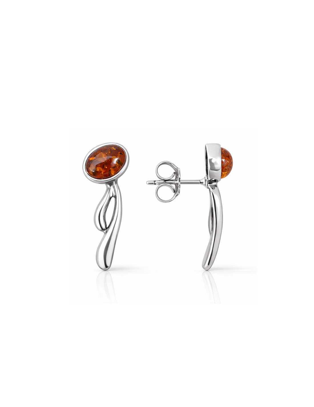 Nowoczesne kolczyki srebrne z bursztynem koniakowym – naturalny bursztyn bałtycki | Polcarat Design KA 035
