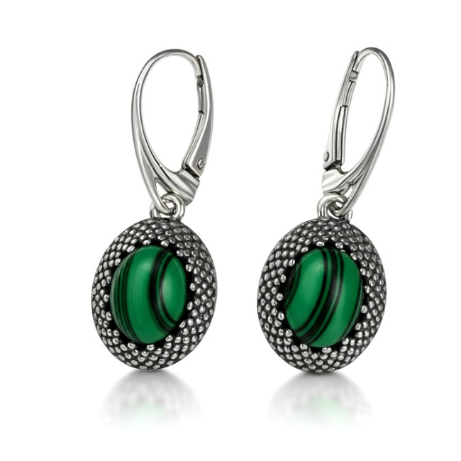 Kolczyki srebrne z malachitami – graficzny szlif dla nowoczesnych uszu