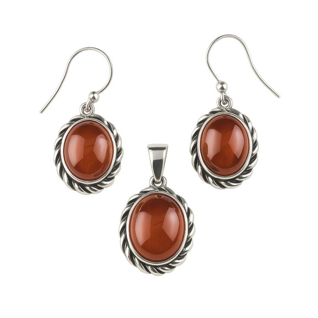 Komplet srebrny z bursztynami w kolorze koniaku.