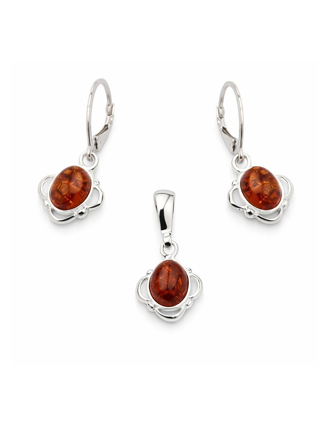 Komplet srebrny zdobiony bursztynami KPL 725