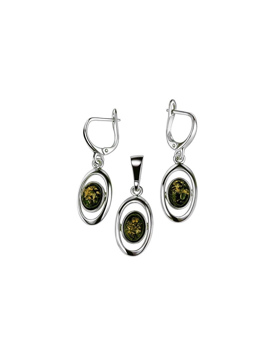 Przedstawiamy Państwu nasz olśniewający srebrny komplet z bursztynem, będący idealnym dodatkiem do każdej kolekcji biżuterii. Wykonany z najwyższą dbałością o szczegóły, ten wyjątkowy zestaw zawiera piękne kamienie bursztynu bałtyckiego w kolorze zielonym, elegancko osadzone w niekonwencjonalnych srebrnych oprawach. Kolczyki i wisiorek w tym zestawie są pięknie ozdobione bursztynem, a połączenie srebra i bursztynu tworzy uderzający kontrast, który z pewnością zwróci uwagę.