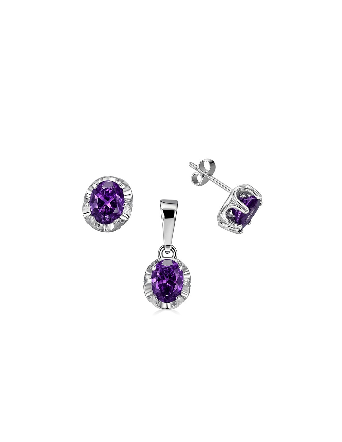 Komplet dedykowany jest paniom ceniącym elegancką srebrną biżuterię i delikatne dodatki do stylizacji. Szczególnie przypadnie do gustu miłośniczkom kolorów fioletowego oraz zielonego i tym, które preferują kolczyki na sztyft ze względu na ich wygodę i uniwersalność.