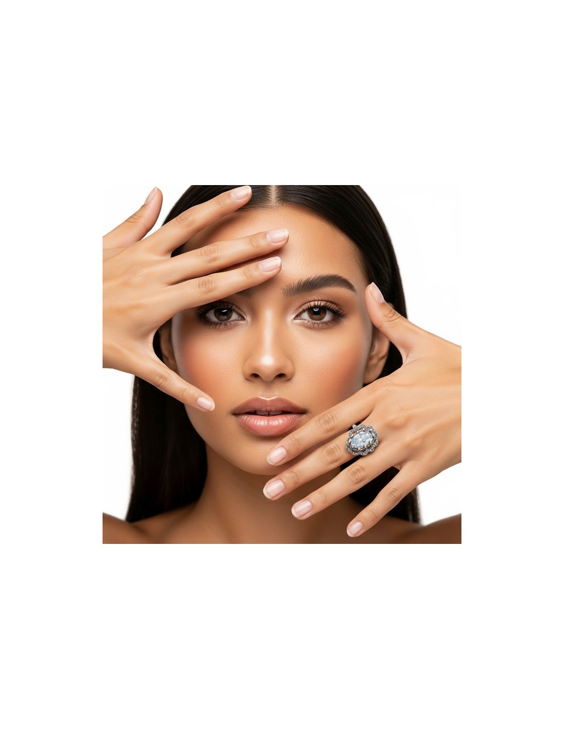 Ten pierścionek to hołd dla kobiet ceniących klasykę – tych, które rozumieją, że prawdziwa elegancja nie podąża za trendami, lecz je tworzy. Jego design łączy w sobie nuty vintage z arystokratycznym sznytem, tworząc kompozycję zupełnie niebanalną.