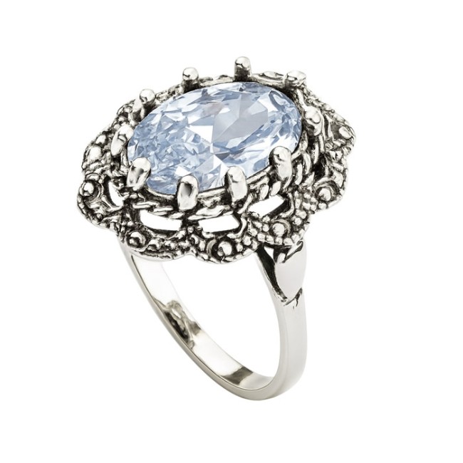 Centralna owalna cyrkonia została starannie osadzona, aby maksymalnie wykorzystać jej właściwości optyczne. Jej precyzyjne szlifowanie sprawia, że kamień rozbłyskuje tysiącem iskier, przypominając o arystokratycznym dziedzictwie klasycznej biżuterii.