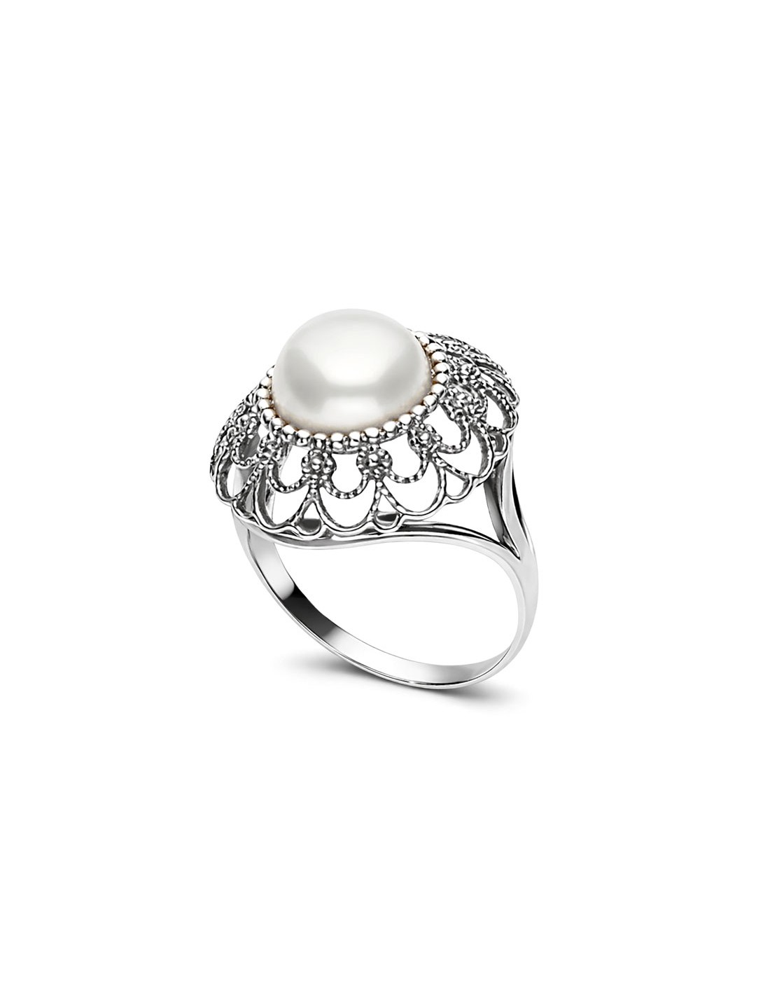 Wykonany z niesamowitą precyzją pierścionek ze srebra próby 925. Zdobiony perłą hodowlaną, osadzoną w pięknym koronkowo-kwiatowym oksydowanym motywie. Produkt charakteryzujący się niesamowitą estetyką , i zachwycaćcy misternym wykonaniem. Doda szyku i elegancji każdej bez wyjątku posiadaczce. Pierścionek jest oksydowany, dzięki czemu na lata zachowa swój wygląd. Do kompletu istnieje możliwość dokupienia kolczyków, bransoletki oraz wisiorka.