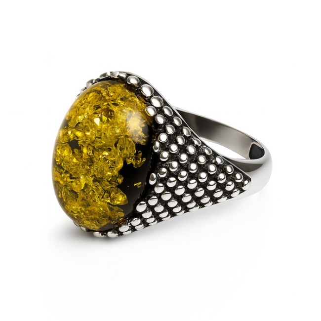 Pierścionek z zielonym bursztynem – oddech lasu w szlachetnej formie