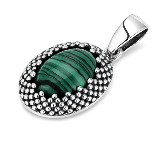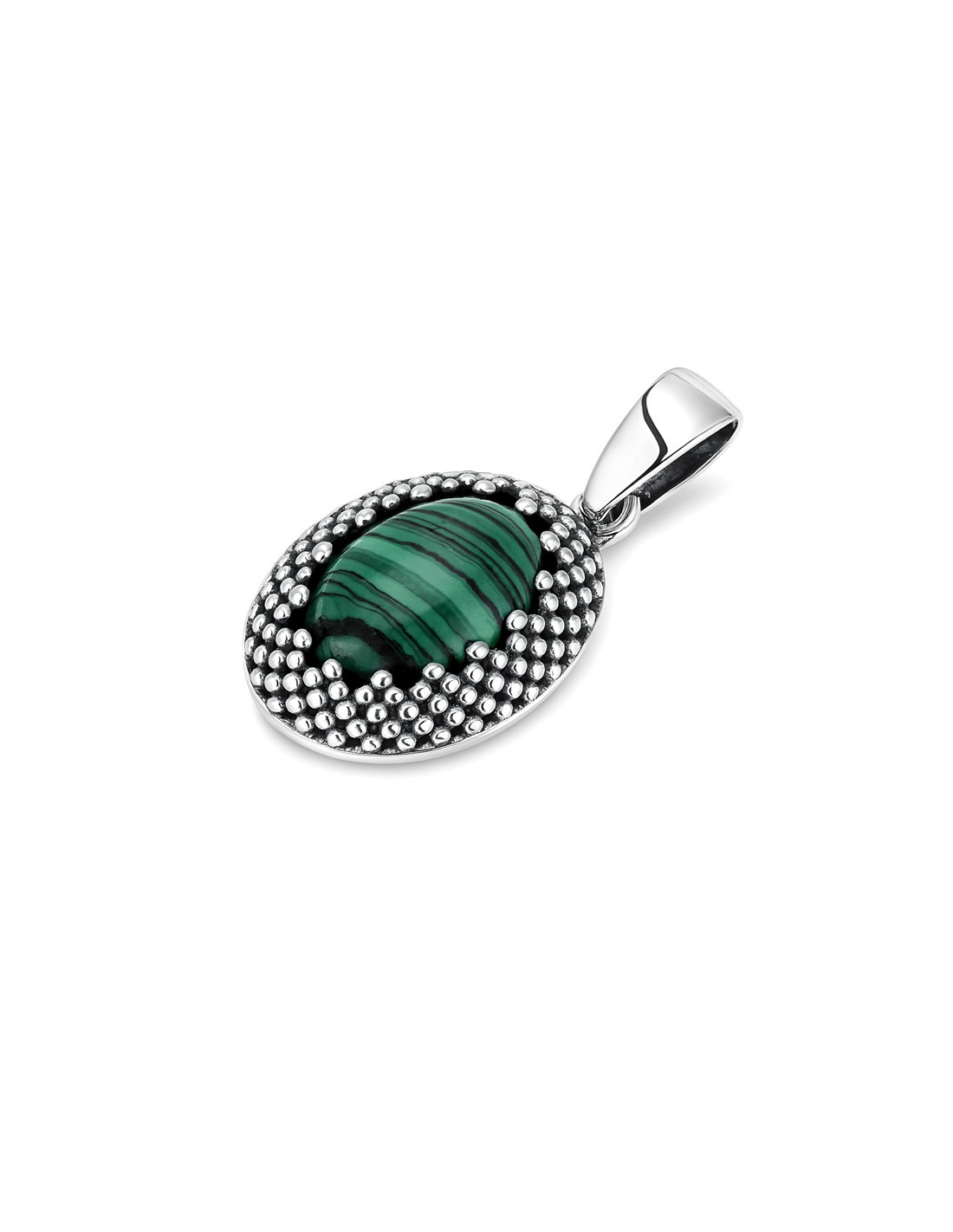 Srebrny wisior z malachitem rekonstruowanym – graficzny talizman blisko serca