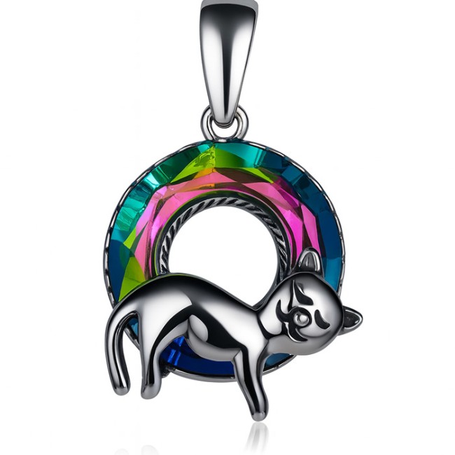 Wisiorek srebrny z kryształem Kot - Urzekający Blask i Elegancja